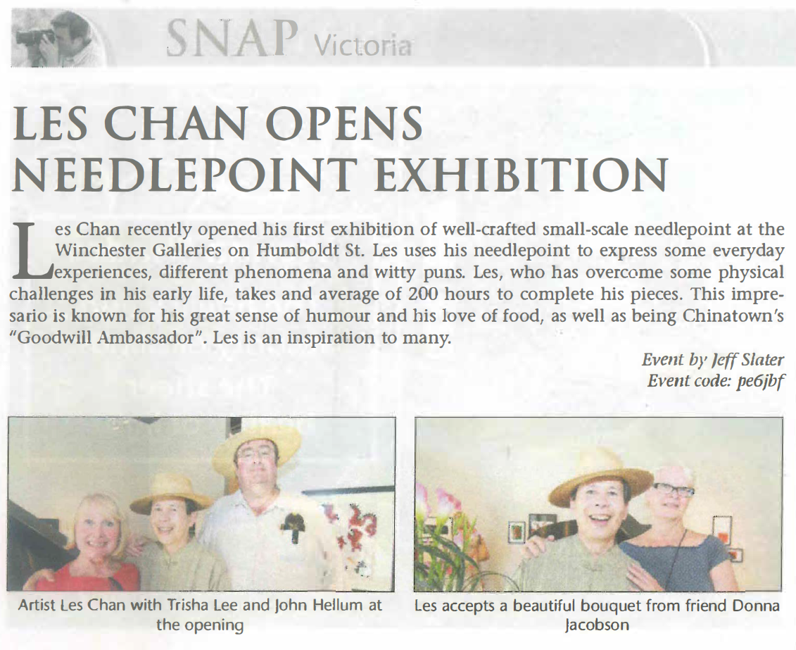 Les displayed he needlepoint art work at Winchester Galleries in Victoria